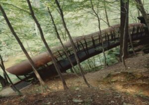 The Fingerspan Bridge, located in the Wissahickon Valley Park in Philadelphia, is a striking piece of architecture that connects various trails while blending into the natural landscape. Designed with an emphasis on sustainability and minimal environmental impact, it utilizes materials that harmonize with the surroundings.