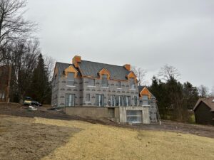 A quick update of the Crystal Lake House in Clifford, Pennsylvania. We are crafting a one-of-a-kind lake house that harmonizes modern living with the surrounding landscape, creating a dynamic space for the family to relax, reconnect, and host guests. We have been working closely with the homeowners to bring their lakeside vision to life, drawing on inspiration from Mellor Meigs & howe, a Philadelphia-based architectural firm renowned for their early 20th-century Neo-Norman residences. The original structure was completely removed, allowing us to rebuild from the ground up with unobstructed lake views as a guiding priority.