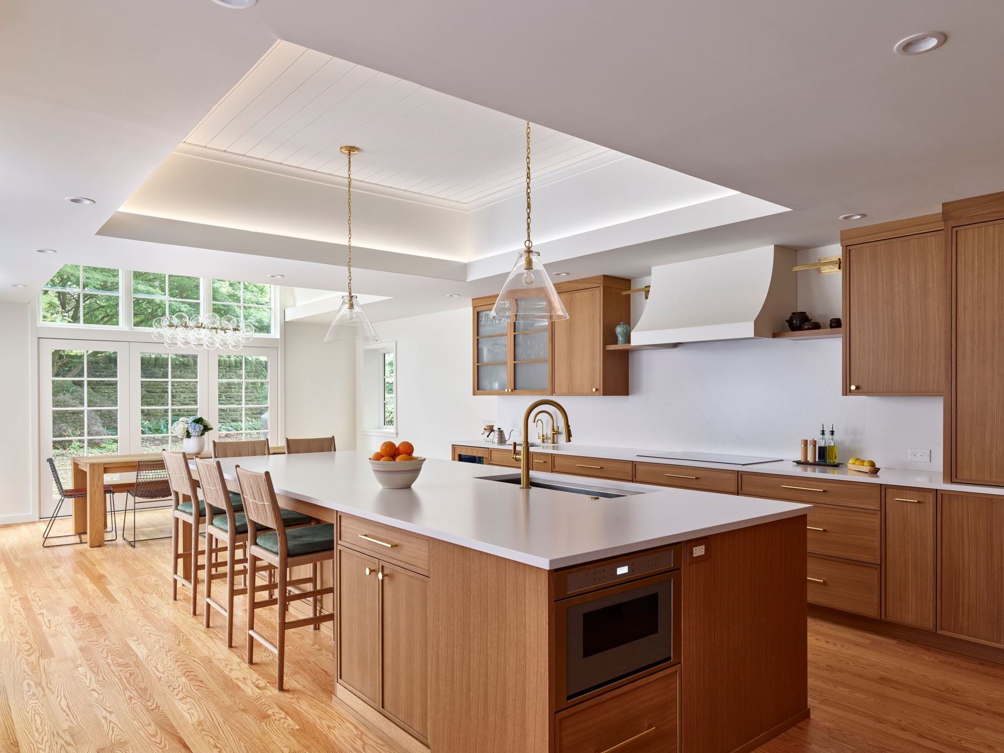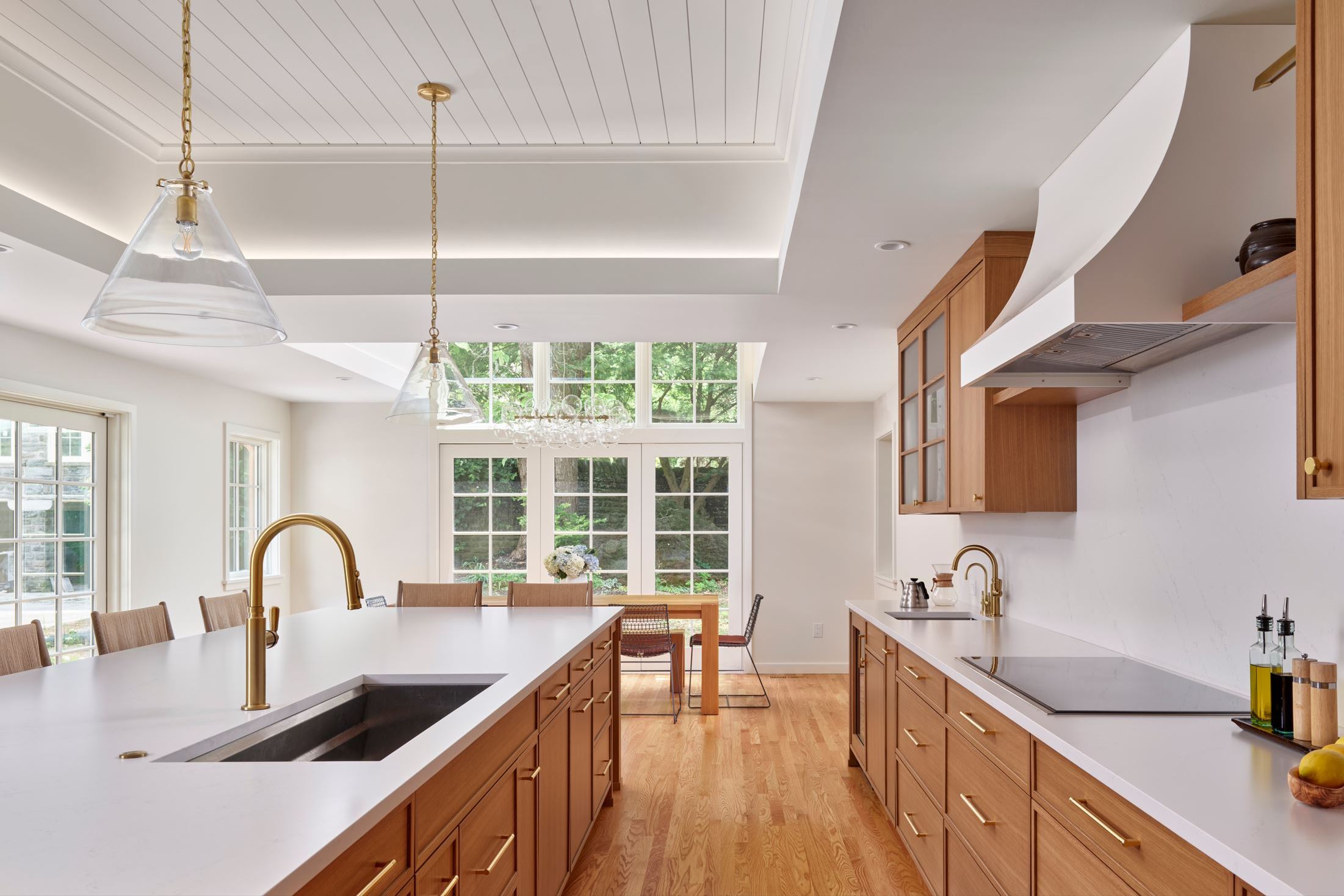 This Philadelphia townhouse received a remodel to improve the flow and circulation of spaces in primary living areas. These improvements enhanced the physical and visual connection to the rear yard and provide a more functional layout – specifically with a new kitchen and dining room addition. A mudroom and laundry room were inserted into space previously occupied by the kitchen and part of the garage. The first-floor powered room and second floor primary bathroom were also renovated.